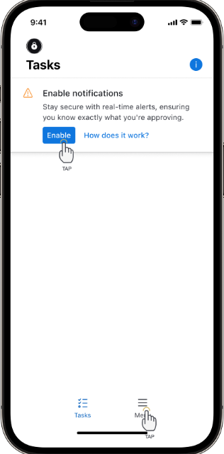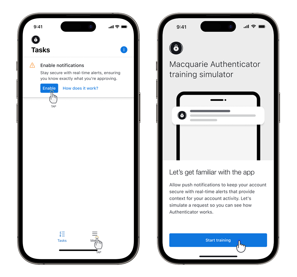 If your client has previously registered their Macquarie ID for Authenticator but did not enable push notifications as part of the registration process, please ensure they select Enable on the Tasks page of Authenticator to finalise the set up.